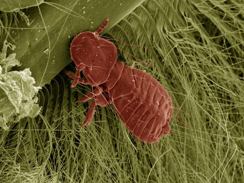 本图中的寄生虫就是只发现于人类身上的头虱。人类头皮的热度可以保证头虱的卵在大约一周内孵化,头虱大约可以活一个月左右。头虱感染是人类世界最流行的一种外部寄生虫感染。与体虱不同的是,头虱不会传染疾病,而且它们的感染症状相对较轻。