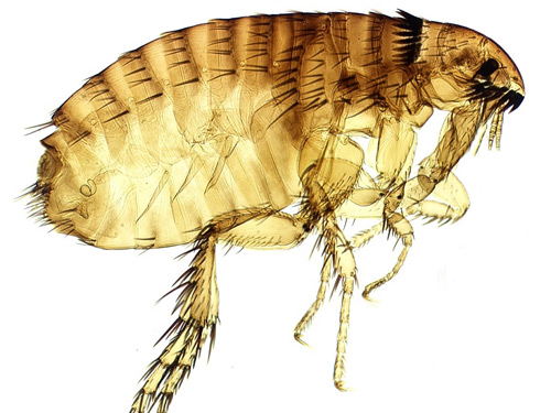 这是一只普通的跳蚤。跳蚤依靠宿主的血液生存。许多宠物爱好者都知道,跳蚤会在被褥上产卵并孵化幼虫。跳蚤幼虫靠吃被褥、皮肤细胞以及成年跳蚤的粪便长大。(彬彬)
