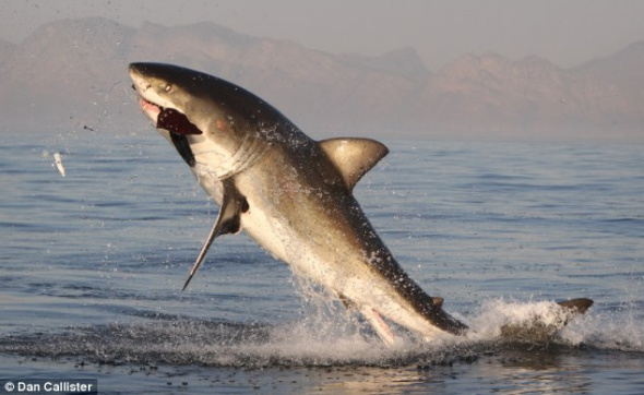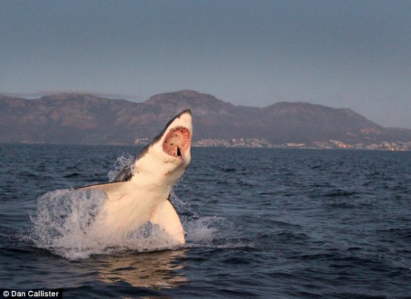 南非大白鲨跃出水面捕食海狗瞬间(图)