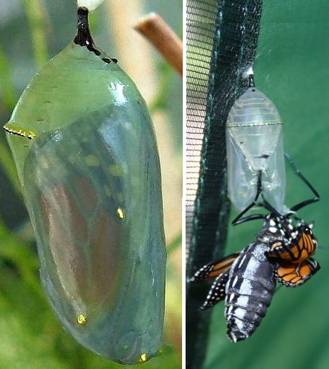 帝王蝶素以极为醒目的翅膀著称动物界,它们的翅膀主色为橙色,上面有一系列黑色条纹和形成鲜明对比的白色斑点。帝王蝶幼虫通常生活在乳草属植物上,身上布满黑色、白色和黄色条纹。在这种高贵的蝴蝶一生之中,只有以蛹的形态存在时才为自己披上金色外皮。