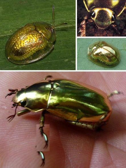 一些甲虫种群身披黄金色外衣,由于颜色太过饱满,很难相信它们发出微光的金壳中不含有24克拉的黄金,但眼前的事实又不得不让人相信。如果真含有黄金,人类中的猎宝者恐怕早已经把它们赶尽杀绝了。