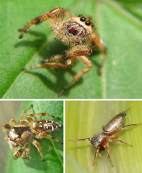 金色跳蛛是手段高明的猎人,擅长打伏击,但它们的织网能力并不出众。因此,很多人可能认为拥有一副类似金属般闪烁的外骨骼并不是它们的最大兴趣所在。这种蜘蛛的金色外衣也许只能吸引人类的目光,它们的猎物绝对不会抱有这种想法,因为金衣的出现无异是一个催命符。