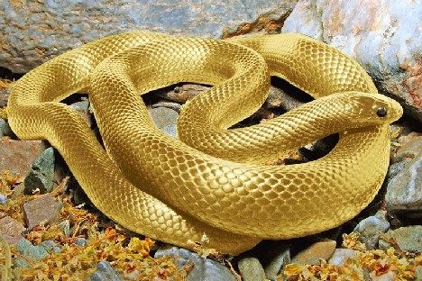 一些蛇类种群因身披金衣而显得格外优雅高贵,其中比较有代表性的当属金色树蛇和金色猫蛇。绝大多数金蛇都生活在沙漠地区,金色外衣帮助它们与沙地和干燥的植被融为一体,使其更适于在干旱的沙漠气候条件下生存。