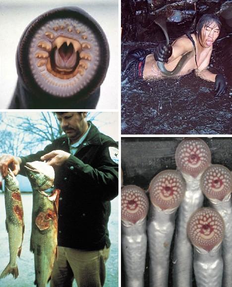 当七鳃鳗用口盘叮住一条鱼时,它就开始紧紧地咬住对方,咬穿皮肉后吸食其中的血液。当然,并不是所有七鳃鳗都是食肉性动物,也很少发现它们会对人类发起攻击。