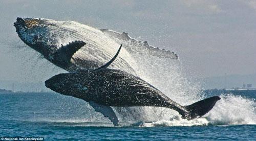 英国游客拍到两只驼背鲸跃身击浪瞬间(组图)