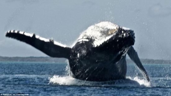 英国游客伊恩·肯勒希德在澳大利亚布里斯班海岸莫雷顿湾幸运地拍到了这组令人惊异的照片。伊恩说:“当时我和一位朋友正在他的小船上,我们看到一群鲸鱼距离我们很近。它们仿佛不在意我们的存在,一度距离我们非常近,仅20米。我们看到了鲸鱼妈妈带着鲸鱼宝宝游,然后它们跃身击浪。简直难以置信,这些庞大的动物跃出水面,然后俯冲下来。虽然看到鲸鱼跃身击浪并不罕见,但是,我从未看到过鲸鱼妈妈带着鲸鱼宝宝一起跃身击浪。尤其是那么近距离接触,我感到非常荣幸。鲸鱼击浪让我们的小船摇晃起来,看到40公吨的鲸鱼妈妈带着宝宝飞跃空中将是我余生的回味。”(秋凌)