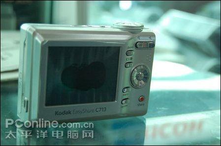 C713采用SD/SDHC卡作为存储介质,使用两节AA型电池供电。背后的2.4英寸液晶屏,面积不算小。操控按键仍然具有C系列的易用特征,红色Share按键还是那么醒目。C713模式转盘放置在快门按键周围。可以看到模式并不多,但都是比较实常用的几项。具有电子防抖,预设16种场景模式和3种色彩模式。