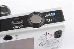 IXUS 80 IS的顶部有一条黑色的边,这倒是延续了IXUS 70的设计。光学变焦和快门按键一体式设计,快门按键键程比较长,半按对焦点很清晰。旁边的电源开关为内嵌式设计,防止放在包包中,被误开机。