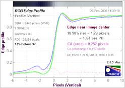 和锐度测试相似,IXUS 80 IS在色散控制上也表现得非常稳定,中央色散值为0.252 pixels,边缘色散值为0.254 pixels,两者均在0.5以内色散值相当低。我们不妨再留意一下IXUS 80 IS在实拍成像中的表现,看看边缘部分的色散如何。