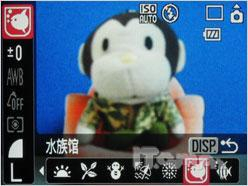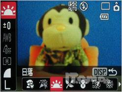 点击FUNC按键,这时画面左侧会弹出快捷菜单。白平衡模式下,除了内置的几种灯光环境,还支持手动白平衡。ISO感光度最大可以达到ISO 1600,不过我们在测试中发现IXUS 80 IS的控噪能力很一般。