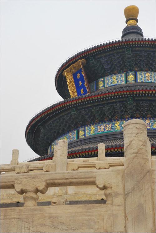看到这张照片,不用我多说也知道是什么著名景点了吧!没错就是天坛,这是主殿祈年殿,拍摄时间大概是早上9点左右,由于云层太厚还没见到阳光,天色有点暗。拍摄时使用了ISO 800,F8的光圈,D60对蓝色果然是比较敏感,在整体偏平淡的色彩中蓝色特别显眼。整体成像清晰,虽然用ISO 800较高的感光度,但画面细腻度还是不错的,就是暗部的微粒较粗对细节的表现有一定影响。