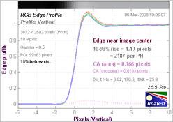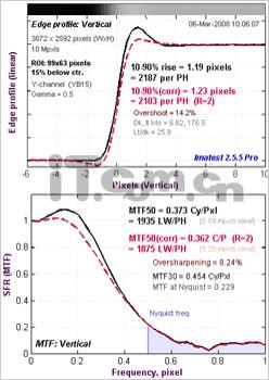 和消费级数码相机相比,数码单反的感光元件尺寸较大而且镜头质量较好,因此在对色散的控制上都有不错的表现。同样是使用套机镜头,尼康D60成像中央色散值为0.166 pixels,边缘色散值为0.365 pixels,色散值非常低,这说明D60套机对色散的控制非常不错,两者都没有超出0.5的较高标准。不过,根据经验在成像的边缘部分还是会有不可避免的紫边现象的,还是要看实拍样张的表现。