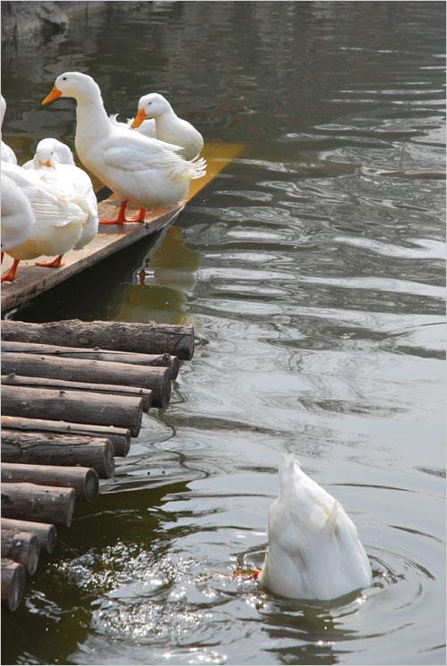 北京的烤鸭很有名啊,不过我不太喜欢吃。这几只鸭子在水里自由自在,不时追逐不时戏水,希望不会再餐桌上再见吧!D60对鸭子的白毛表现不太理想,有点过亮了,细节损失。