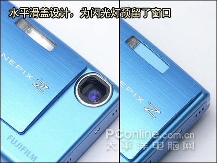 和Z100fd斜拉盖设计不同,Z20fd的设计继承了Z10fd的水平滑盖设计。考虑到内置闪光灯会被遮挡的问题,镜头盖上还为闪光灯预留了位置。不过在镜头盖合起来时,会有一些闪光灯露出来,显得不够完美。
