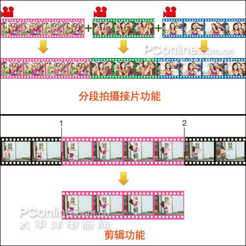 全新推出的短片编辑功能可以让你直接在相机上就可以对拍摄的视频进行剪辑,除去不需要的内容,完全不需要电脑的介入。这一功能大大加强了用户拍摄视频的兴趣。