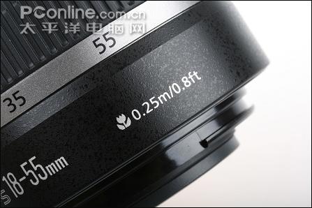 佳能EF-S 18-55mm f/3.5-5.6 IS镜头的最近对焦距离(焦点到焦平面的距离)为0.25m,这比EF-S 18-55mm f/3.5-5.6 II的0.28最近对焦距离缩短了3cm,放大倍率也从后者的0.28提高到了0.34,对于一般的微距摄影已经足够。