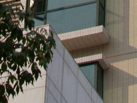 由于卡尔·蔡司24-70/F2.8专为全幅开发的,所以24mm广角在APS-C格式的α300上折算成36mm,只能算是小广角。由这张样张中可以看到,索尼α300有着不错的宽容度,近处树叶没有出现死黑一片。并且远处的树木和天空的蓝色都较好的保留下来。值得一提的是,镜头的光学素质十分优秀,面对高光没有出现明显的紫边。