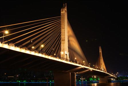 夜景中使用脚架拍摄以关闭机身防抖为前提,因为机身防抖的抖动校正会对画质带来微细的影响。桥梁上方的黄色光斑也是桥梁灯光所造成的光荤,对于整体效果也存在一定破坏。F8.0光圈下灯光的星芒效果算是一般,但通过查看原图可以发现,画面的亮部和暗部的细节刻画都比较到位。