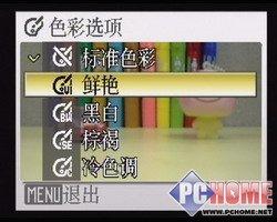 L18的色彩模式不同于P60,P60则是采用了类似人像、柔和等内置模式来调节色彩,而L18则更多的停留在色调基础上,L18共有标准色彩、鲜艳、黑白、棕褐、冷色调,这几个模式。而通过图来看,还是比较简单的色调调整,其中基本经常采用的只有标准和鲜艳了。