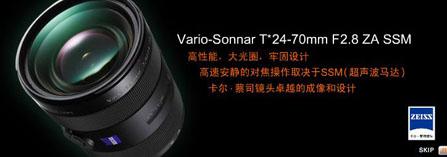 Vario-Sonnar T* 24-70mm F2.8 ZA SSM镜头的特色在于恒定最大2.8光圈下支持全幅α卡口DSLR,并且具备优良的T*镀膜技术、2片非球面镜片、2片ED镜片和SSM超声波马达。