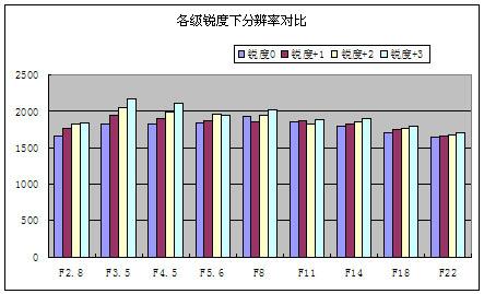 下面,以50mm为例,在标准风格设置下通过对0到+3级(共7级,包括-3到+3)锐化设置下分辨率变化作出对比,找出锐化设定级别最为接近实际分辨率的锐化设置。在我们看测试数据时先看一段有关分辨率测试的介绍: