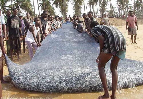 在象牙海岸小小的阿纳尼(Anani),需要一村的全体村民才能拉动装满清晨捕捞成果的巨大渔网。