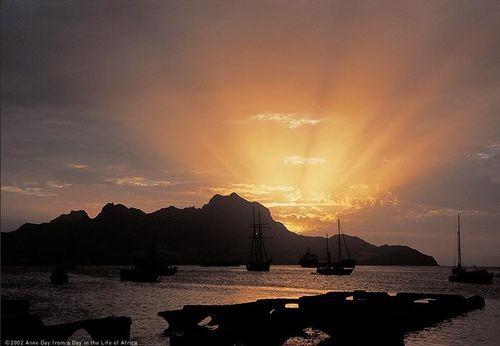 Cape Verde。揭晓时分,渔船纷纷离开圣维森特(Sao Vicente)。佛得角共和国由15个崎岖不平得岛屿组成,圣维森特就是其中的一个,距塞内加尔海岸500英里。