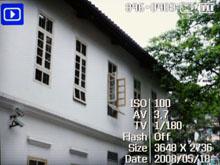 三星蓝调i100同样采用以往的图形化界面,通过Flash 菜单可以轻松而充满乐趣的操作相机。菜单的响应速度也得到了提高,免去了用户担心操作迟缓的疑问。回放界面也是一贯的简洁设计,全参数显示下同样有很大的可视面积,但是比较遗憾的是没有查看曝光的直方图显示。