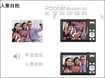 自拍时脸部背对相机屏幕,利用最新的脸部识别技术相机可以发出“嘀嘀”声来告知您当前是否在取景画面中。通过相机的声音提示可以轻松判断当前面部是否对焦到画面中心,从而拍摄出最佳自拍照。
