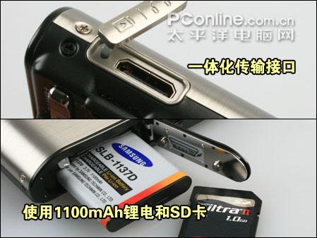 数据线接口设计在机身侧面,具有保护盖防止灰尘进入。电池方面同样为i85上使用的1100mAh的SLB-1137D锂电池。蓝调i100机身附带用户可支配内存190M,同样使用MMC、SD卡作为外部存储使用,外部存储:MMC plus (最大支持2 GB),SD/SDHC (最大支持4 GB)。另外值得注意的是,蓝调i100同样存在使用时机身发热较大的问题,三星在这方面需要继续研发。