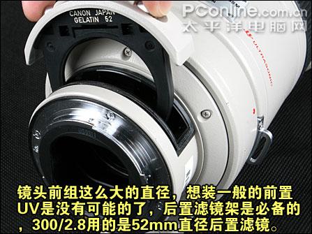 既然不能装前置滤镜,那么后置滤镜架就是必须配备的了。300/2.8用的是52mm直径的后置滤镜。