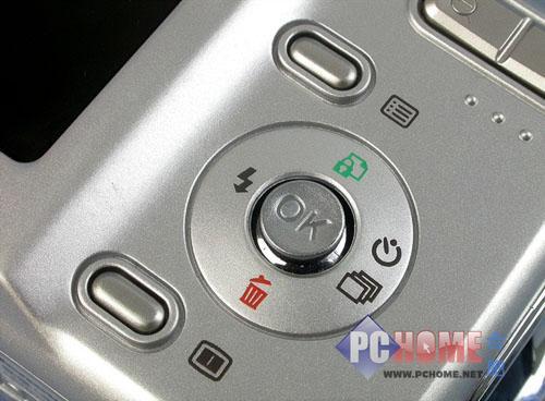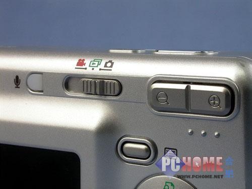 机身背后,爱国者V760装配了一块2.5英寸23万像素的高亮液晶显示屏,色彩鲜艳锐度也很高,显示效果令人满意。右侧自上而下依次是变焦环、回放、菜单、五维功能键、删除和模式按钮。