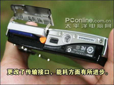 尼康S52在机身设计上与S51的显著不同点,怕且仅在于传输接口的不同,不知道这是出于怎样的考虑而更换掉了。S52同样没有具备高清视频输出,同样采用EN—EL8锂电池〔730毫安时〕和SD、SDHC卡。由相关机构测试结果看来,尼康S52一次充电能提供拍摄各种环境200张左右,比S51进步了50张,看来S52在能耗上作出了一定的优化。