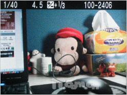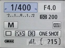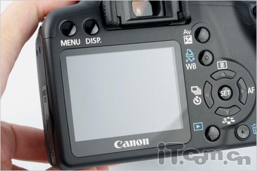 背面,按键布局和450D完全一样,相比400D按键稍大,操控起来更加方便。显示屏从之前3英寸缩小到2.5英寸,像素为23万,此举很显然是为了控制成本,在意料之中。1000D背面屏幕的显示效果出色,尤其是在色彩还原上,非常准确。除此之外,为了降低成本,之前在光学取景器下方的眼部感应器也被取消,也就是说,当脸部靠近取景的时,屏幕不会自动关闭。考虑到根据不同消费者的使用习惯,佳能1000D内置了几种节电模式,其一是快门按钮,也就是在半按快门的时候,关闭屏幕,当快门释放后,屏幕恢复显示,其二是快门/DISP,也就是快门释放后,屏幕不会恢复显示,必须人为通过按键来激活屏幕,其三是保持打开状态。一般情况下,建议设置为快门/DISP模式。仔细对比,我们还发现手柄位置的红外接收窗口也从1000D上消失了,这意味着1000D将不支持红外遥控功能。