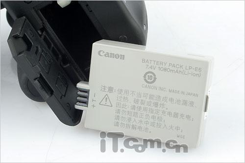 供电方面,采用的是LP-E5可充式锂电池,容量为1080mAh,电压7.4V。基于CIPA的测试标准,一次充电可以拍摄约600张,而我们实际测试的结果竟然能够达到650张,续航能力吃惊,一般家庭用户没有必要配备备用电池。