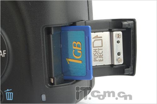 存储方面,佳能1000D支持SD和SDHC卡扩充,没有内置存储空间,这和450D是完全一样的,可以一次连续拍摄约514张高质量的JPEG图像或一次连续拍摄约5张RAW图像。SD卡如今已经在入门数码单反相机中普及,它在价格上的优势不言而喻,由于1000D是千万像素级的,所以我们建议大家购买4GB容量以上,避免日后重复投资。1000D所有的接口都位于机身侧面,表面有橡胶垫覆盖,防止灰尘进入。