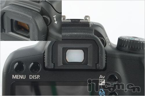 光学取景器采用眼平五面镜,放大倍率达到0.81倍,视野率是95%,放大倍率相比400D的0.8倍稍有提升,和450D的0.87倍相比,还是稍逊一筹。取景器亮度一般,眼罩质感比较硬。