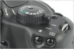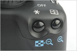 模式转盘的高度增加了,但手感一般。机身右上角的两个按键在回放模式下,它们是用来实现照片放大和缩小的功能,在拍摄模式下,分别是曝光锁定和对焦点选取功能。