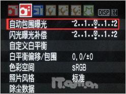 虽然1000D在硬件上相比400D有些缩水,但在功能上,一个都不少,比较实用的包围曝光、白平衡包围等功能都有配备。