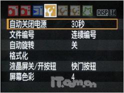 虽然顶部的LCD状态屏取消了,但通过背面屏幕查看相机参数已经被大多数用户所接受。佳能1000D的菜单格式和450D几乎一样,针对不同的拍摄环境设计了四种的配色方案,可以在系统菜单中选择。虽然屏幕尺寸缩小到2.5英寸,但各个参数有条不紊的排列,一目了然,并不感觉混乱。