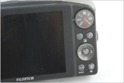 背面,显示屏的尺寸进行了升级,达到3.0英寸23万像素,其表面覆盖了富士独有的广视角补偿膜(WV膜),可视角度大幅增加。整个测试过程中,屏幕在室内的表现堪称一流,但在光线比较强烈的室外,还是感觉亮度不足,夜景拍摄,暗部依然存在颗粒感。由于屏幕的面积增大,按键区进行了调整,模式拨盘和多功能选择器的面积都进行了瘦身处理,不过手感缩水并不严重。模式转盘用于各个拍摄模式之间的切换,使用频率很高,挡位比较清晰,A/S手动曝光模式的保留对于那些喜欢创作的摄影爱好者来说,无疑留下了很大空间。下方的F快捷键是富士独有的, 通过它可以跳过繁琐的菜单,直接改变相机的分辨率、感光度以及色彩模式等参数,面部识别功能也被独立设计成一个按键,激活非常简单。多功能选择器四个方向照例都被定义了不同的功能。