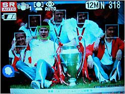 富士F系列最引以为豪的功能就是脸部优先技术,由于采用的是硬件识别,所以无论是在识别准确率,还是在识别速度方面,在同级别产品中处于领先地位。F60fd采用的是脸部优先技术3.0,经过对之前两代脸部优先技术的优化,3.0技术可对倒立的,倾斜的,横向的脸部进行智能化识别并对对焦,曝光,闪光,以及白平衡进行优化。经过我们实际测试F60fd的脸部识别功能果然强悍,下面第一张测试图,我们之前测试过很多品牌相机的脸部识别功能,仅有极少数的机型能识别出人脸来,而F60fd是能识别出最多人脸的一款,并且识别速度很快。接着的两张图对于F60fd来说只是小菜一碟。脸部优先功能可通过右下角的按键一键进入,非常方便。