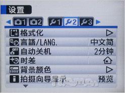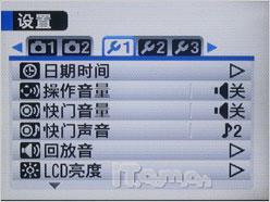 系统设置菜单中,我们发现富士F60fd可以设置的功能还不少。如果不喜欢菜单的背景色彩,可以在六种颜色中重新选择。图象显示的时间可以自由设定。如果想要拍摄烟火,可以在系统菜单中启动长时曝光功能。快门声音、操作声音都可以逐一调整。