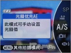 由于针对家庭用户设计,所以富士F60fd的拍摄界面并没有显示过多参数,模式转盘在进行切换的同时,屏幕会同步显示虚拟转盘。光圈优先和快门优先模式的保留,给予用户很大的创作空间,消费级数码相机中很少还保留手动曝光功能的。