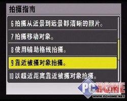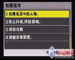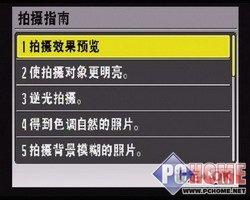 此次奥林巴斯在FE370上装备了全新开发的智能拍摄模式,能自动判断五种不同场景(肖像,风景,夜景人物,微距和运动场景),拍摄时相机自行识别拍摄场景,用户只需按下快门即可得到理想的照片。另外奥林巴斯的传统项目教学模式也同样引入FE370,丰富的菜单,强劲的指向性,从上图可以看出,只要通过简单的菜单教学模式就能把FE370引向正确的拍摄模式