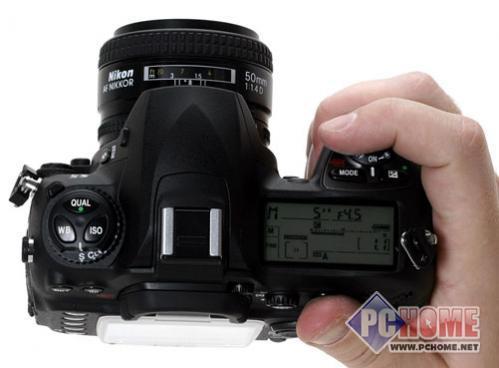 在镜头卡口右侧是闪光灯控制按键、包围设置按键、镜头装卸按键、对焦方式选择开关,手柄侧面是SD卡插槽。D80顶部装载一块可显示信息的液晶屏,围绕液晶屏的按键设计紧凑,顶部正中的闪光灯热靴能支持SB-800,SB-600等i-TTL闪光灯。