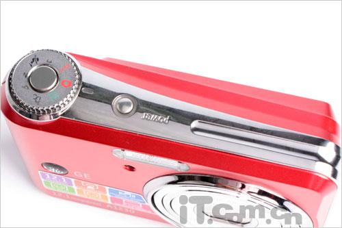 在相机顶部,用户可以通过模式拨盘自由选择拍摄模式,还可以实现全手动控制,对曝光量进行随心的调整。比较有趣的是全景拼合模式,可以实现三张不同角度的照片合并在一起。顶面有一条凹槽设计一方面对持握起到防滑作用,另外也为A1230添一份动感。开关就略显得娇小,加上有时反应比较慢,不够灵活。