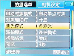 拍摄菜单中,常用用的测光模式有三种:AIAE,点测光和中央重点测光。更有人像拍摄中常用到的眨眼侦测设置。B门的设置进一步增加了它的手动操作性能。在拍摄菜单中开启曝光图指示,可以看到相机的具体曝光情况,更精确的控制曝光。