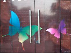 从下面的风景样张中我们可以清楚的看到,相机成像非常清晰,不愧为1200万像素。蔚蓝的天空,青葱的树木,层次分明的高楼都有很好的表现,逼真细腻,色彩相当不错。下面的两张小图是两个有趣的门画,上面的图案也能清晰的表现出来。