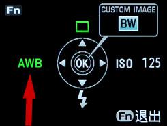 拍摄状态时按下Fn键,进入白平衡选项 | 选择手动白平衡进入 |